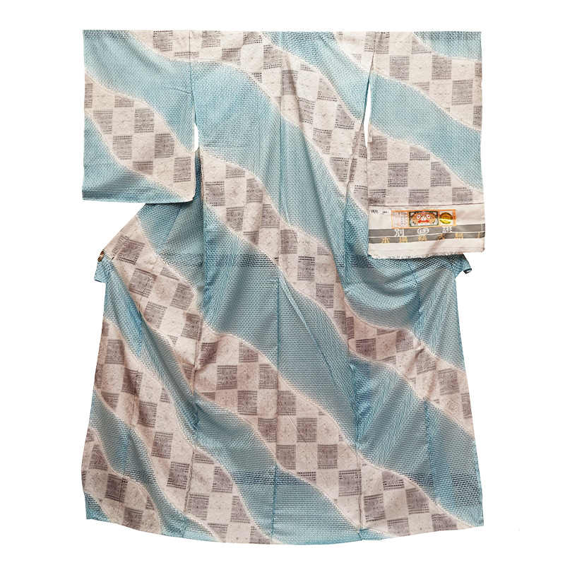 特選本場大島紬地汕頭刺繍併用訪問着〈道長取市松正倉院文様〉