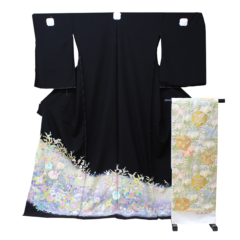 華やかで上品な本加賀友禅のお留袖に 重厚感ある袋帯を合わせると、 気品と優美を感じさせる逸品です。