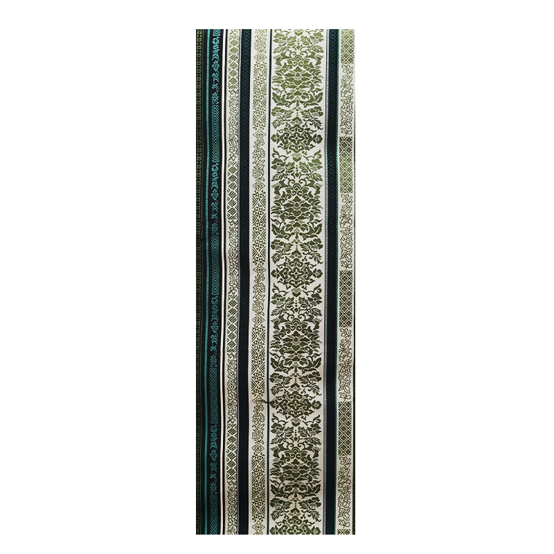 博多織は出来上りを想像して予め何千もの経糸の配列を決めておきます。この何千という経糸で柄を織り、そこに太い緯糸をしっかり打ち込みます。 又、博多織の中でも人気の本品「平地織」は特に打ち込む力強さと深い経験が要求される厳選品です。