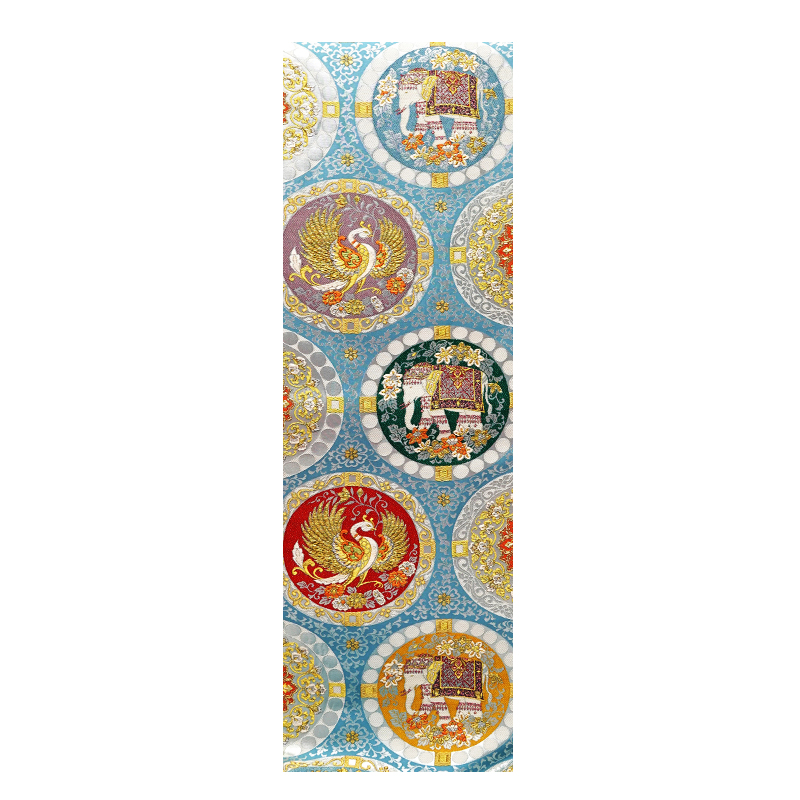 西陣の名門による本銀箔を使用して手織りで制作した非常に華やかな雰囲気の礼装用袋帯のご紹介です。 埋め機(堀り機)を使用し、地中より1メートル50センチ掘った場所に機を置いて職人が手織りにて制作いたします。 金箔に漆を塗って三河和紙を貼り付けたものを細く細断して糸にするという非常に手間暇をかけて制作されている逸品です。 一点一点丁寧に手作りで制作しております。