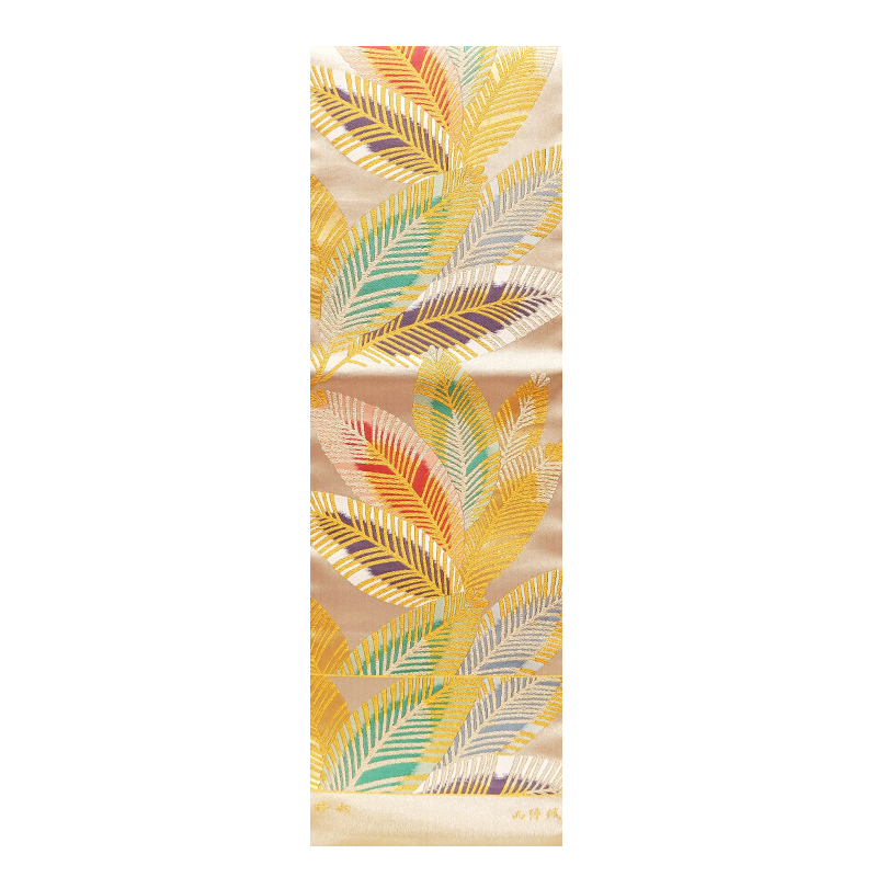 西陣の老舗による特選袋帯。 大胆な若松の柄を織り上げた華やかな袋帯です。 振袖の帯として晴れの日を彩る特選品です。 是非とも店頭でご覧くださいませ。