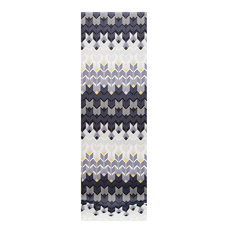 藍で先染した糸を経糸に使用した矢羽柄の博多八寸帯です。